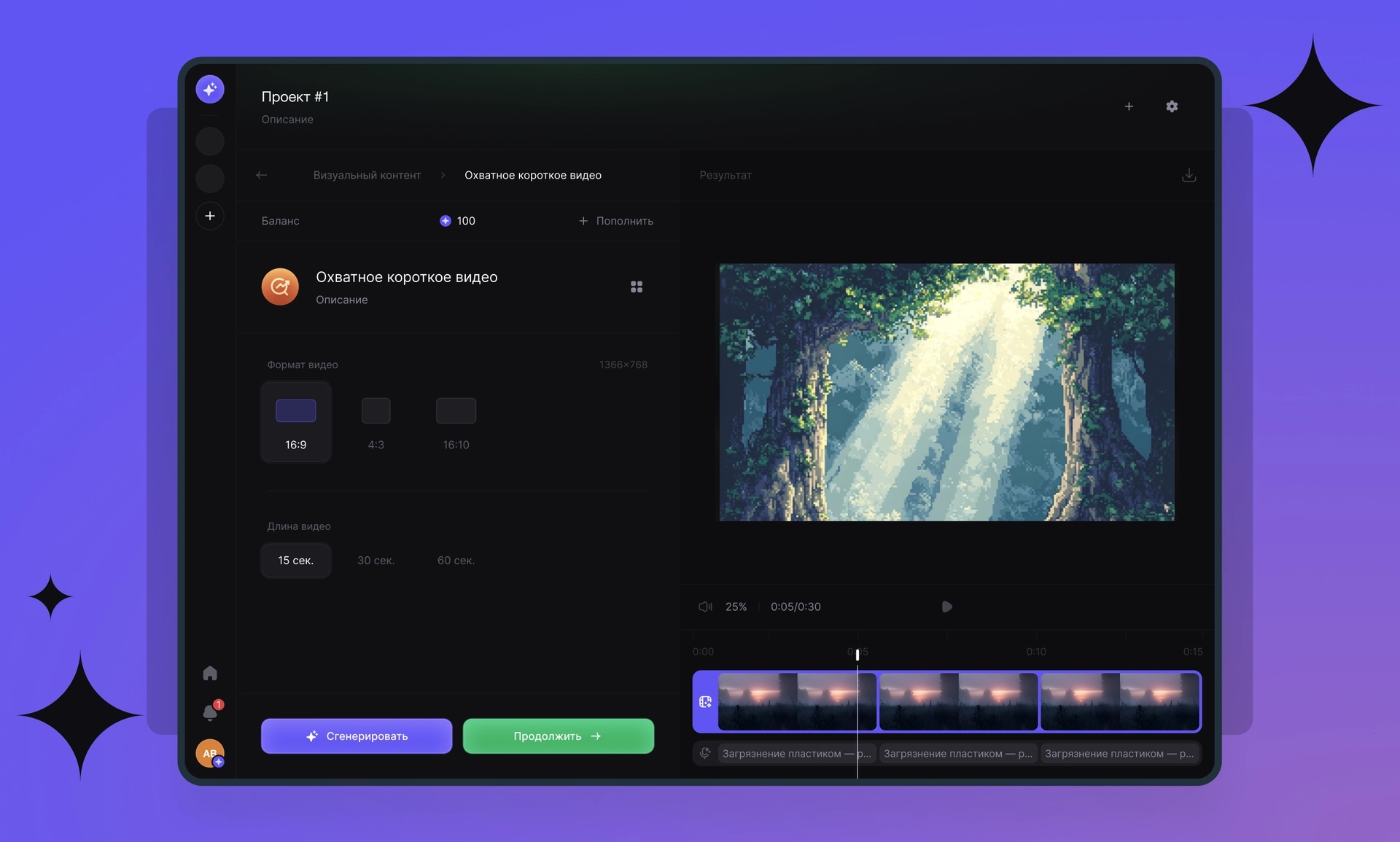 Разработать SaaS продукт для SMM-специалистов, контент мейкеров и блоггеров, позволяющий создавать подходящий под нужную тематику контент в пару нажатий. Необходимо разработать интерфейс написания постов, генерации изображений в 100+ стилях, а также генерацию видео.