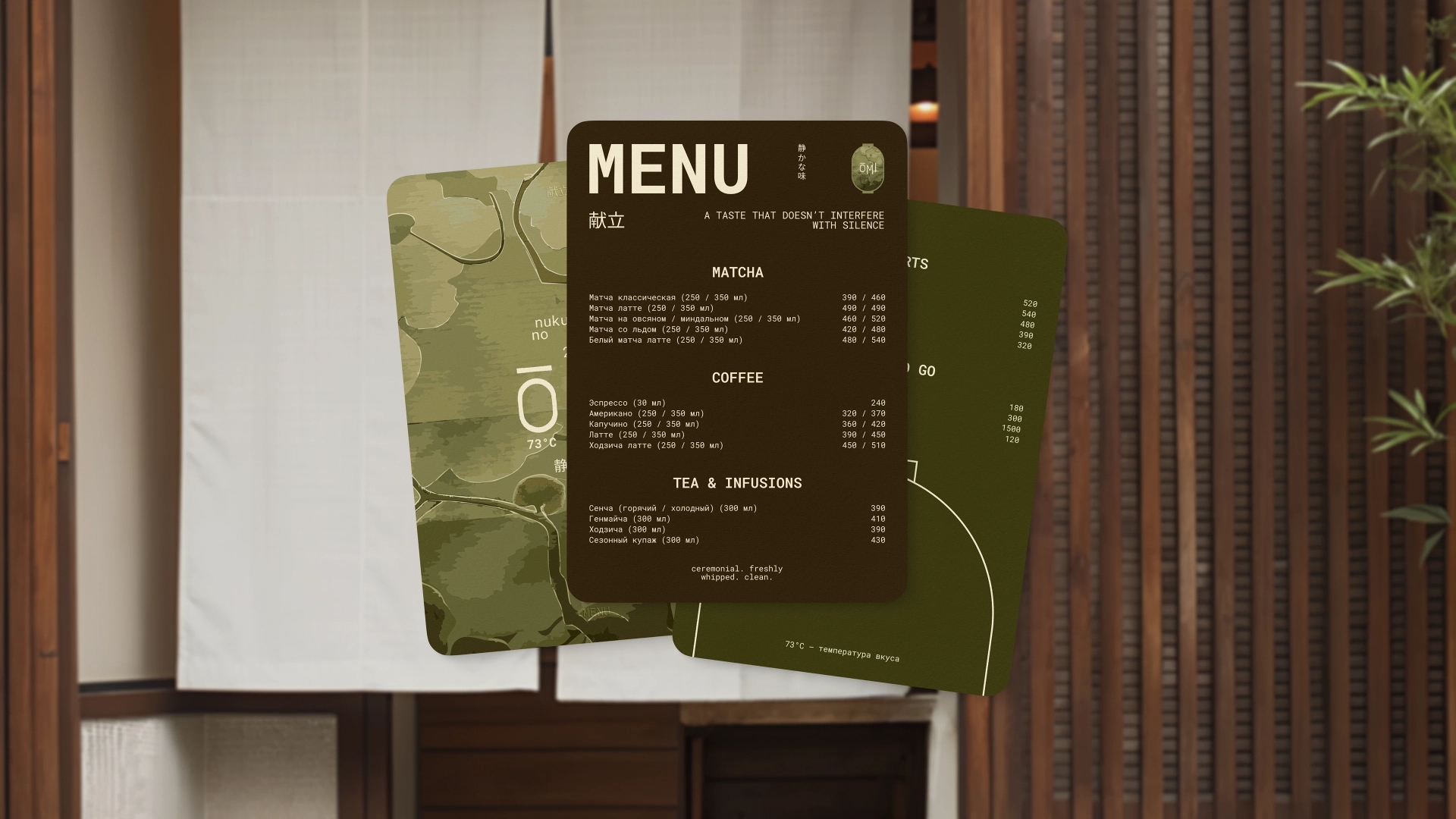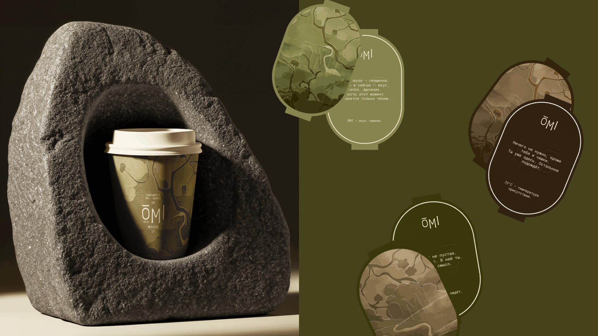 Передать через дизайн идею о том, что ОМІ - это не просто кофейня, а пространство переживания. Здесь важен каждый штрих: цвет, форма, материал, ритм. Это бренд внимании к деталям, о прикосновении к простому и настоящему.